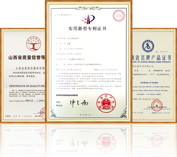 山西金鑫针布有限公司是山西省高新技术企业,“环境友好型企业”,环境行为评价“绿色企业”,是中国纺织机械协会理事单位。“金鑫”商标是山西省著名商标。盖板针布是国家重点新产品,并获得了多项国家专利。